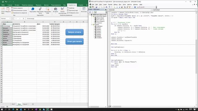 18 Цикл For Each Next. Основы циклов и отчётов. Программирование макросов в Excel.