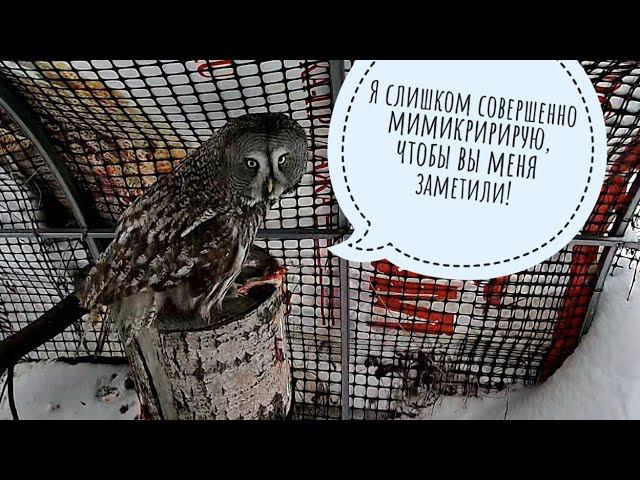 Бородатая неясыть Кофи: приключения с крысой на пеньке, макание лицевого кружка в стол, пропажа еды