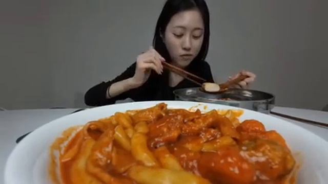Мукбанг лапша, семга, ттокпокки Еда на камеру