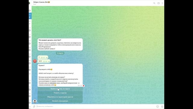 Хотите узнать, как создаются телеграм-боты? В этом видео вы увидите, как ученики онлайн-школы программирования IRON PROGRAMMER разрабатывают своих первых ботов. Вы сможете увидеть, как они применяют полученные знания на практике. Если вас заинтересовала тема разработки телеграм-ботов и вы хотите научиться этому, оставьте заявку на курс по тг ботам по ссылке: https://forms.gle/pRK7RzxpRmtR5VGS8. Станьте частью сообщества IRON PROGRAMMER и начните свой путь в мир программирования уже сегодня!