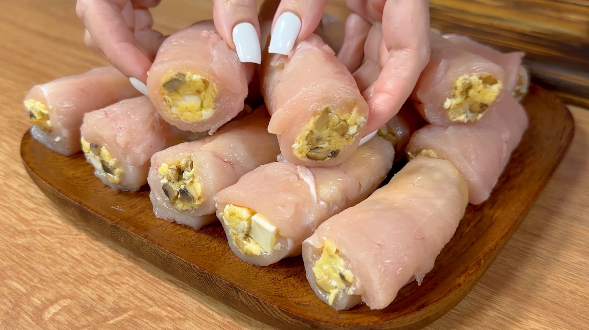 Как приготовить самые вкусные рулетики из куриного филе? Этот рецепт уже завоевал сердца моих соседей! Супер вкусно и просто! Привет, дорогие зрители! Сегодня у нас особенный рецепт, который станет настоящим хитом у вас дома. Этот видеорецепт предлагает приготовить куриные рулетики — настолько вкусные, что захочется есть их каждый день! Этот простой и легкий рецепт курицы подарит вам удивительный ужин для всей семьи. Забудьте о сложных приготовлениях, ведь эти куриные рулетики готовятся очень легко и быстро. Невероятно вкусная начинка придаст им уникальный вкус, который завоюет сердца всех гурманов. И самое прекрасное: для этого рецепта не нужно использовать духовку! Это значит, что ваши куриные рулетики будут готовы в мгновение ока. Приготовьте этот ужин из куриной грудки, и все члены семьи будут в восторге от этого великолепного блюда. Не забывайте ставить лайк, подписываться на канал, и делиться этим рецептом с друзьями. Приятного аппетита и до новых встреч на нашем кулинарном канале! Ингредиенты: 1 кг филе грудки 2 яйца 200 г грибов 50 г сливочного масла Соль (по вкусу) 100 г сыра 30 г майонеза Перец (по вкусу) 100 г плавленого сыра 3 яйца 150 г муки 50 мл растительного масла куриные рулетики, куриные рулетики с начинкой, куриные рулетики в духовке, рулетики из куриной грудки, рулетики с куриной грудкой,