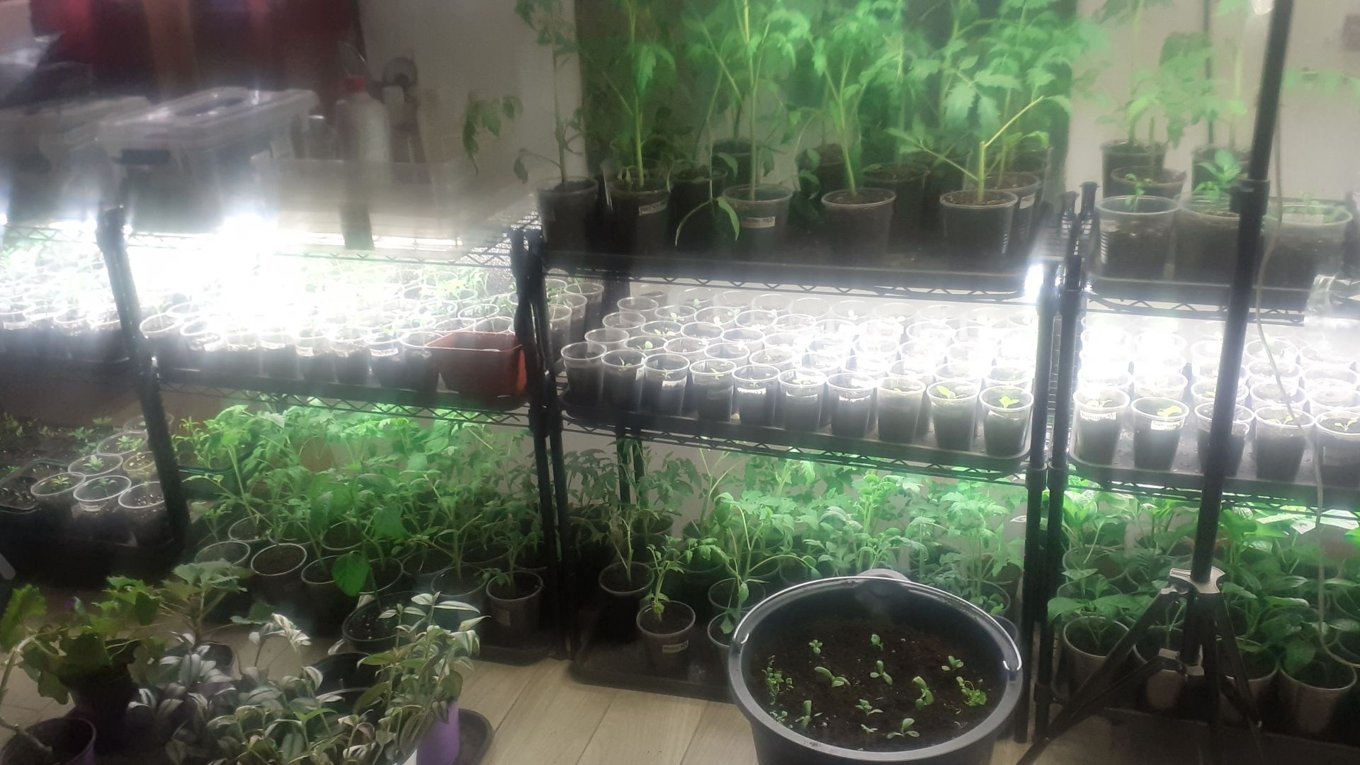 26.03.2026 Рассада на стеллажах и новые посевы.