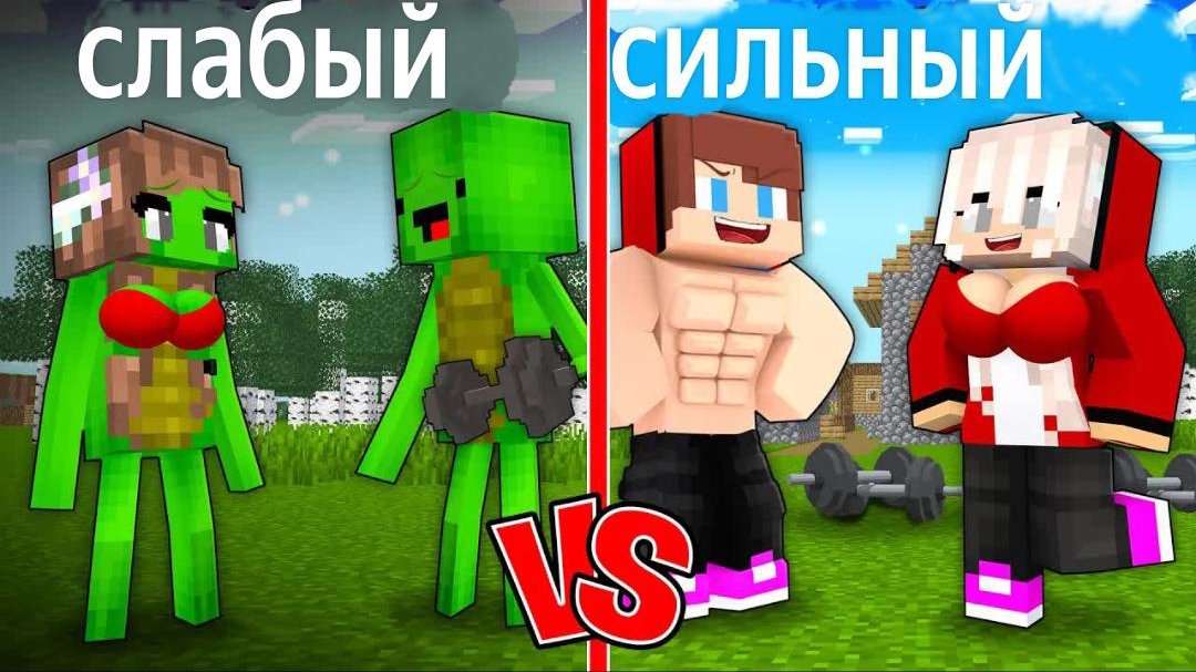 Слабая семейка Майки против сильной семейки Джей Джей - Анимация для Майнкрафта (Джей Джей и Майки)