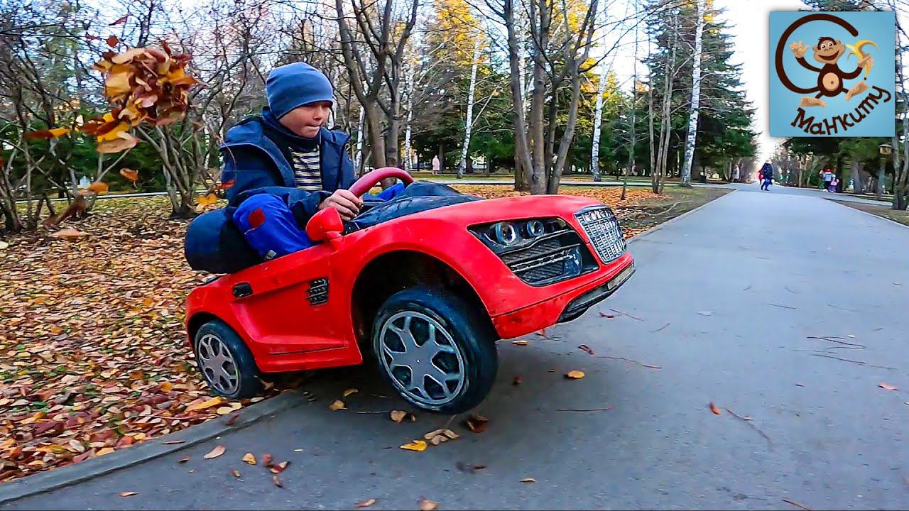 Дети и машина. Диана и Даня катаются на красной машинке и скейте. МанкиТайм