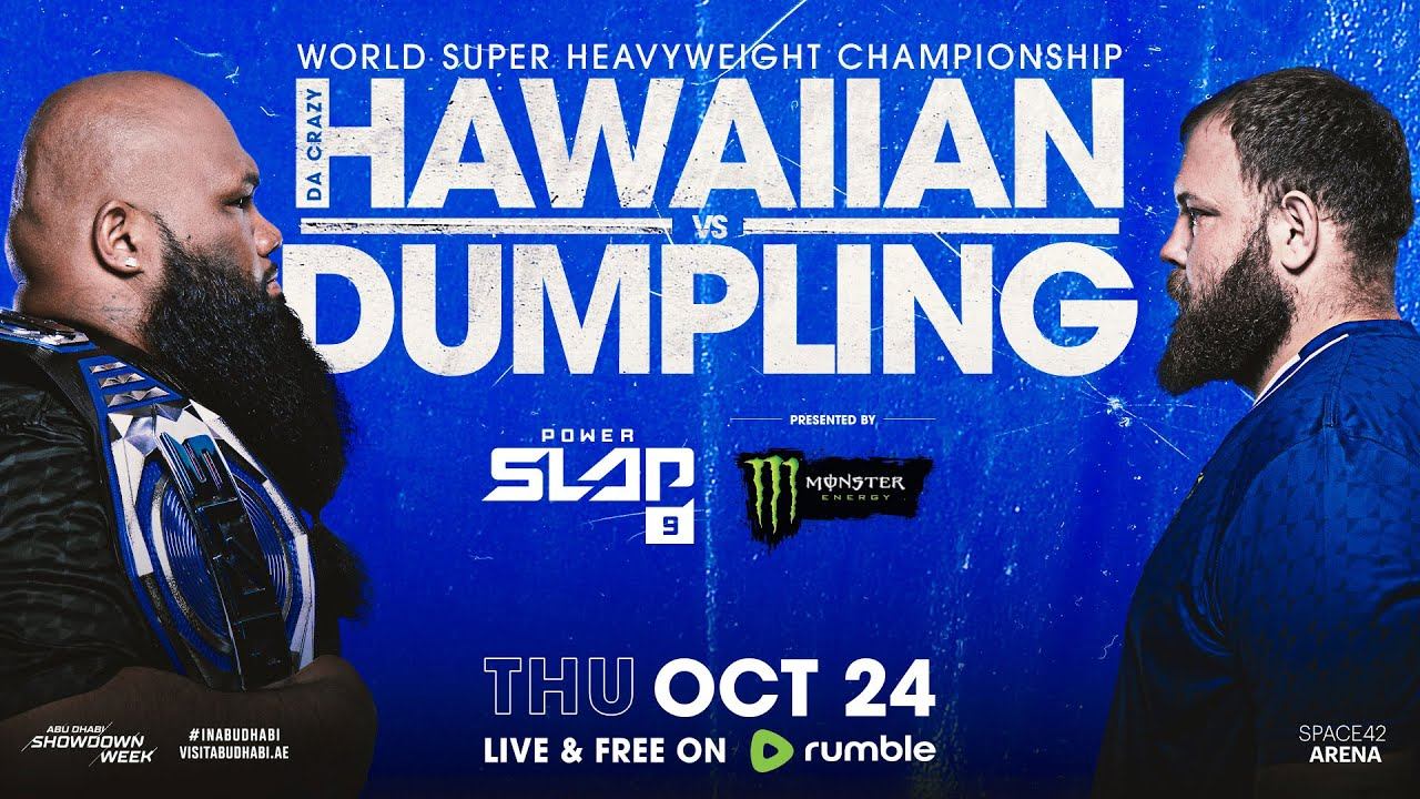 POWER SLAP 9: Da Crazy Hawaiian vs. Dumpling, takes place on Thursday, October 24, at Space 42 Arena in Abu Dhabi as part of Abu Dhabi Showdown Week, headlined by UFC® 308: TOPURIA vs HOLLOWAY. Tune into Power Slap Road to the Title EVERY WEDNESDAY 9pm ET/6pm PT - Free on Rumble Sign up for a Crypto.com App account using code “POWER”. Complete a purchase of Cryptocurrency of at least $50 in a single transaction. Reward: $15 worth of CRO Shop Power Slap Merch now at the Official Fanatics Power Slap Shop - https://shop.powerslap.com/en/ Sponsored by Double Eagle Injury Law, don’t let the insurance companies slap you around - https://www.doubleeaglelaw.com/ Aminoheal - The Official Brain Protection Supplement of Power Slap ➡️ https://aminoheal.myshopify.com Download Rumble (TV + Mobile) https://rumble.com/our-apps Download Power Slap Mobile now https://bit.ly/powerslapapp Don't miss new Power Slap content every week on Rumble https://rumble.com/powerslap Rumble is free on desktop, mobile and web at www.rumble.com, iOS, Android, Roku, AppleTV, FireTV, Samsung TVs. Subscribe now: https://bit.ly/3EZ96s0 Learn more: https://www.powerslap.com Connect with Power Slap online and on Social: Facebook: https://www.facebook.com/slap Instagram: https://www.instagram.com/powerslap/ Rumble: https://rumble.com/powerslap Snapchat: https://snapchat.com/add/PowerSlap ⚫ TikTok: https://www.tiktok.com/@powerslap ⚪ Twitter: https://twitter.com/powerslapleague #PowerSlap #DanaWhite #PowerSlap9