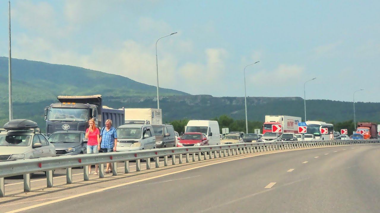 ТРАССА НА ЧЁРНОЕ МОРЕ ПАРАЛИЗОВАНА. ЛЮДИ ИДУТ ПЕШКОМ. БЕЗ КОММЕНТАРИЕВ...