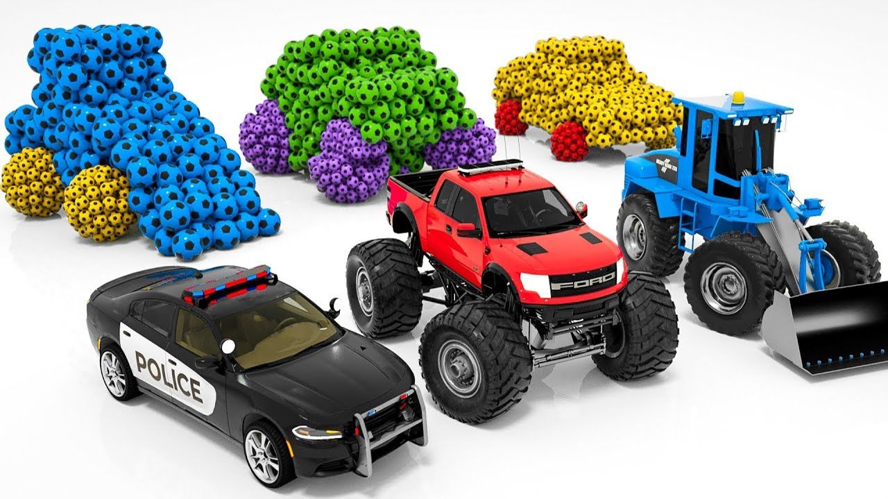 Машинки, полицейские машины и бульдозеры для детей изготавливаются из разноцветных воздушных шаров