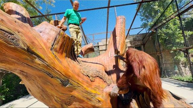 ШИКАРНОЕ ВИДЕО! За Олегом Зубковым на огромное дерево залезает ОГРОМНЫЙ ОРАНГУТАН!