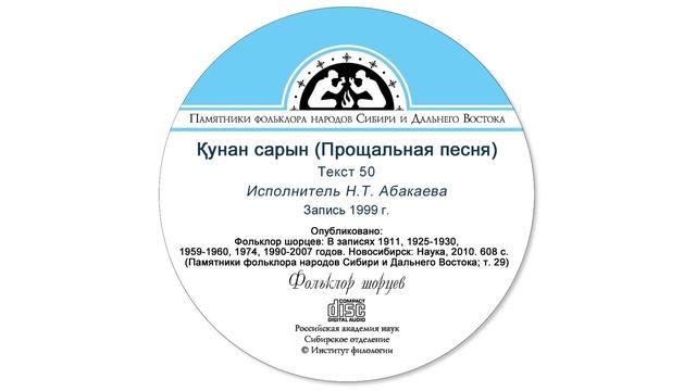 Қунан сарын (Прощальная песня). Текст 50. Исполнитель Н.Т. Абакаева. Запись 1999 г. Опубликовано: Фольклор шорцев: В записях 1911, 1925-1930, 1959-1960, 1974, 1990-2007 годов. Новосибирск: Наука, 2010. 608 с. (Памятники фольклора народов Сибири и Дальнего Востока; т. 29).