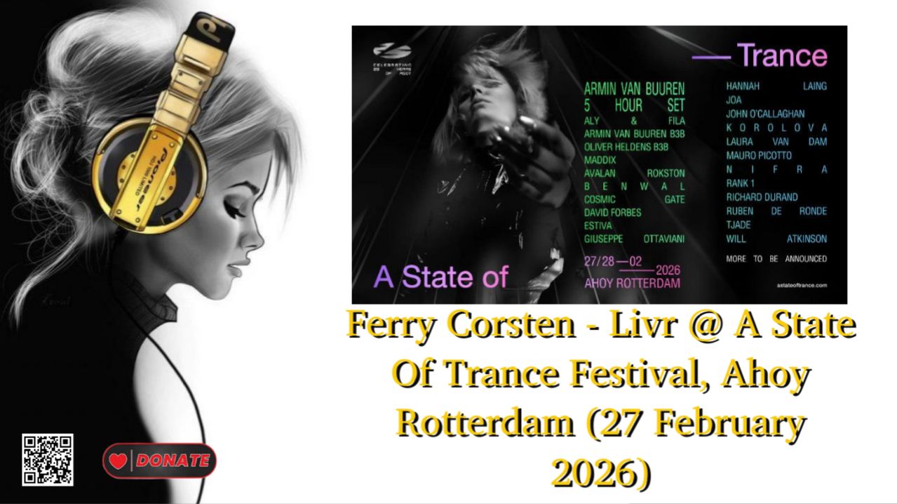 Ferry Corsten - Livr @ A State Of Trance Festival, Ahoy Rotterdam (27 February 2026) Artists: Ferry Corsten Show: Armin van Buuren - A State of Trance ASOT Genre: Trance Duration: 58m Audio Bitrate: 320kbps 44100kHz FileSize: 80.97 MB Post Date: 28-February-2026 Rec Date: 27-February-2026