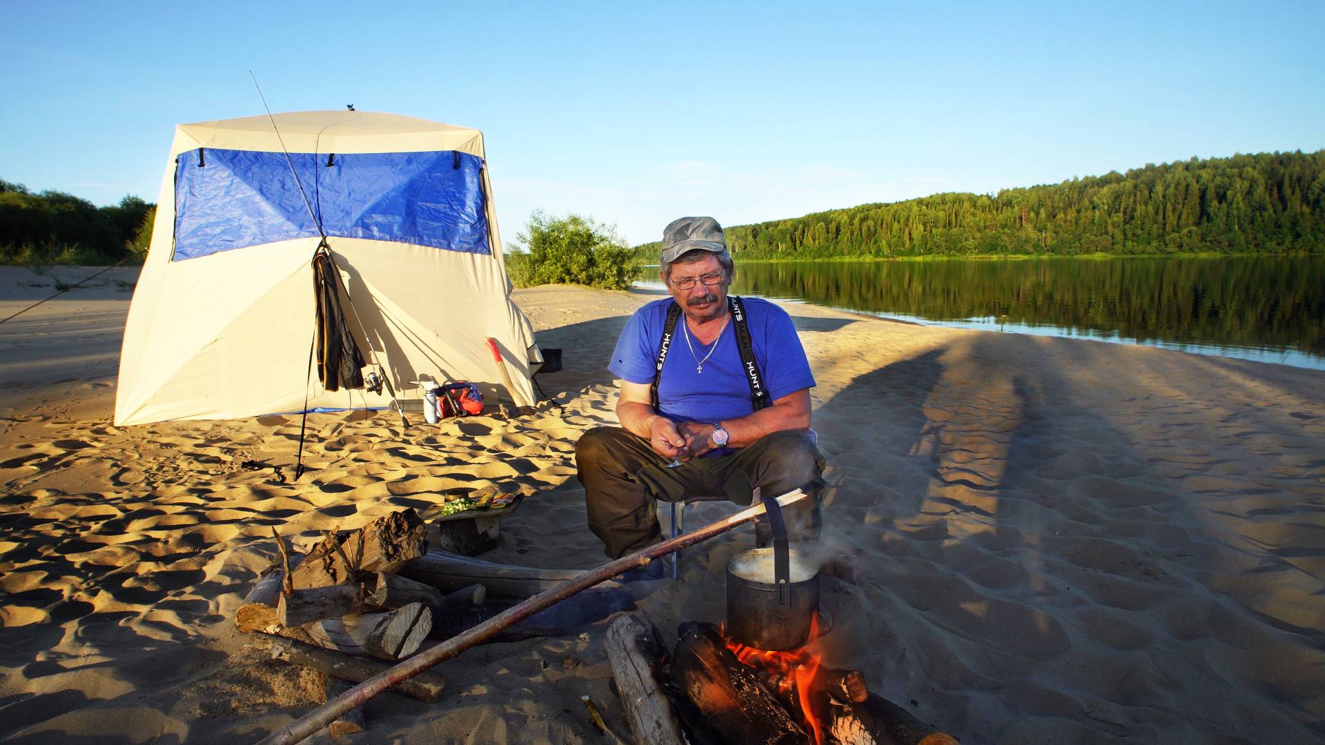 БАТЯ СПАС РЫБАЛКУ. ПЛЯЖ, ПАЛАТКА, КОСТЁР. ОТМЕЧАЕМ ДЕНЬ РЫБАКА. 2 ДНЯ НА РЕКЕ