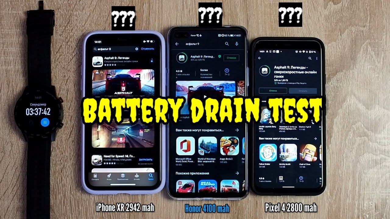Тест автономности Pixel 4 vs Honor V30 Pro vs iPhone XR. Battery drain test.