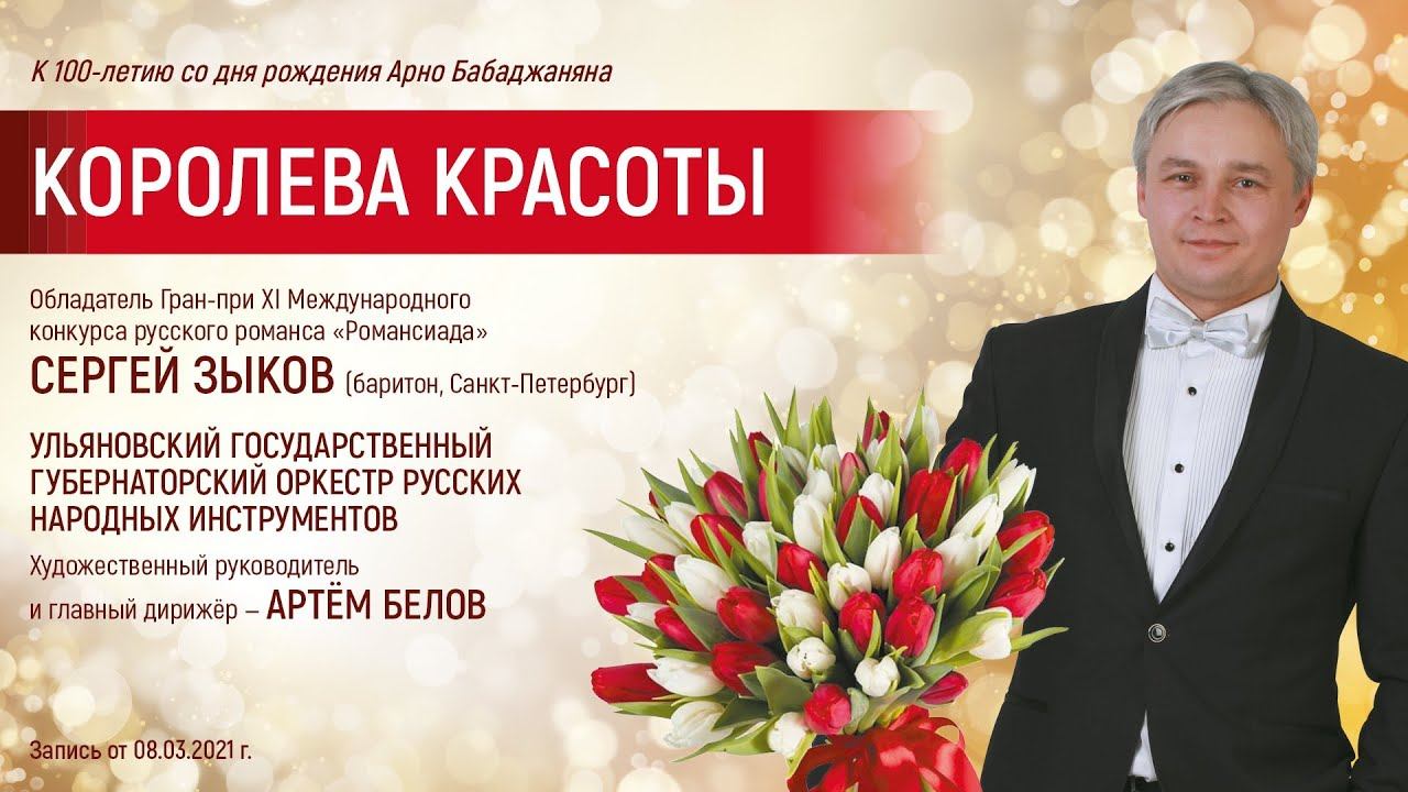Ульяновский государственный губернаторский оркестр русских народных инструментов Художественный руководитель и главный дирижёр – Артём Белов Обладатель Гран-при XI Международного конкурса русского романса «Романсиада» Сергей Зыков (баритон, Санкт-Петербург) Лауреат международных конкурсов Маргарита Долгоненкова (сопрано) В программе прозвучат лучшие песни одного из самых популярных и любимых советских композиторов - Арно Бабаджаняна, в этом году мы отмечали 100-летие со дня его рождения. Песни, созданные «Великим Арно», знала вся страна, они не смолкали в теле- и радиоэфире, а пластинки с ними расходились миллионными тиражами. Песни Бабаджаняна и сейчас популярны и любимы так же, как и при жизни композитора. Запись от 8 марта 2021 г.