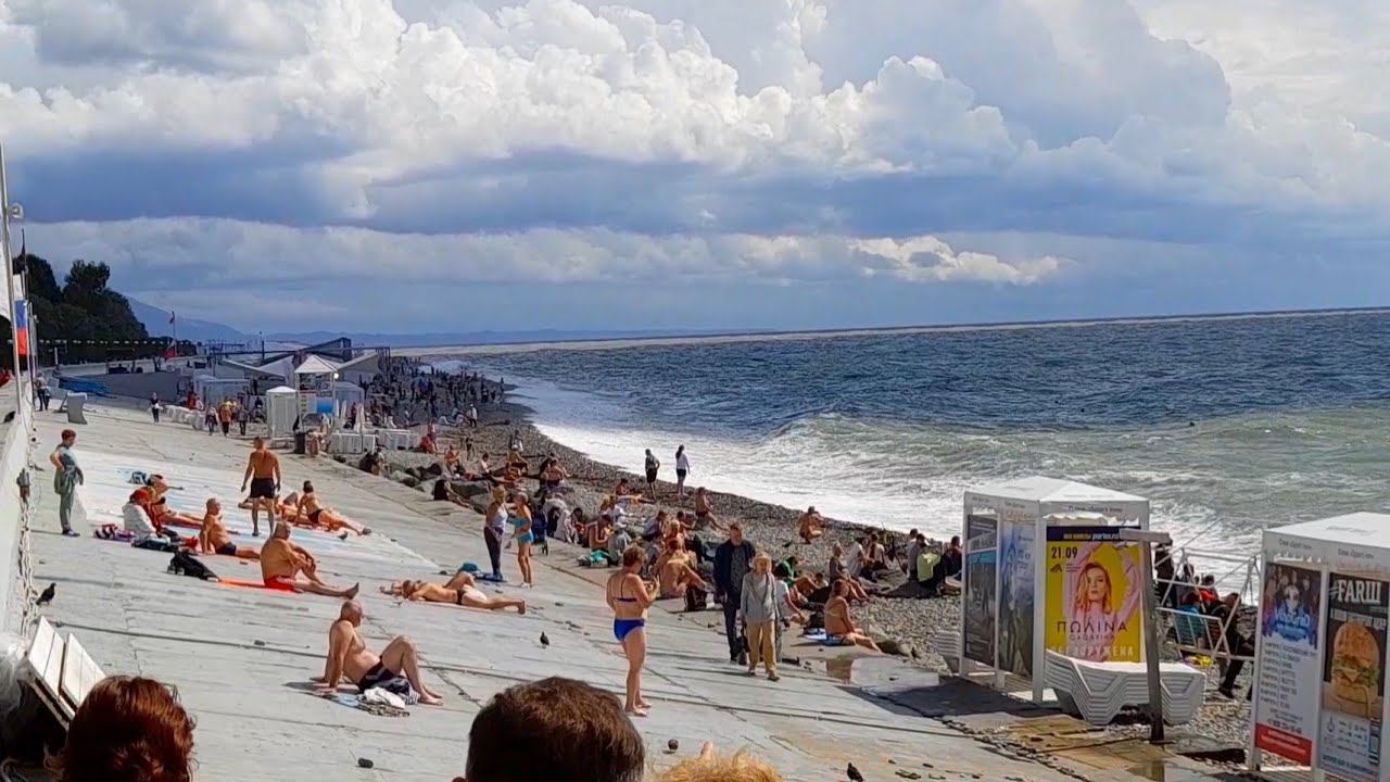 СОЧИ. ШТОРМ ПРОДОЛЖАЕТСЯ НО ЛЮДИ ЗАГОРАЮТ. НЕПОГОДА 23.09.2022