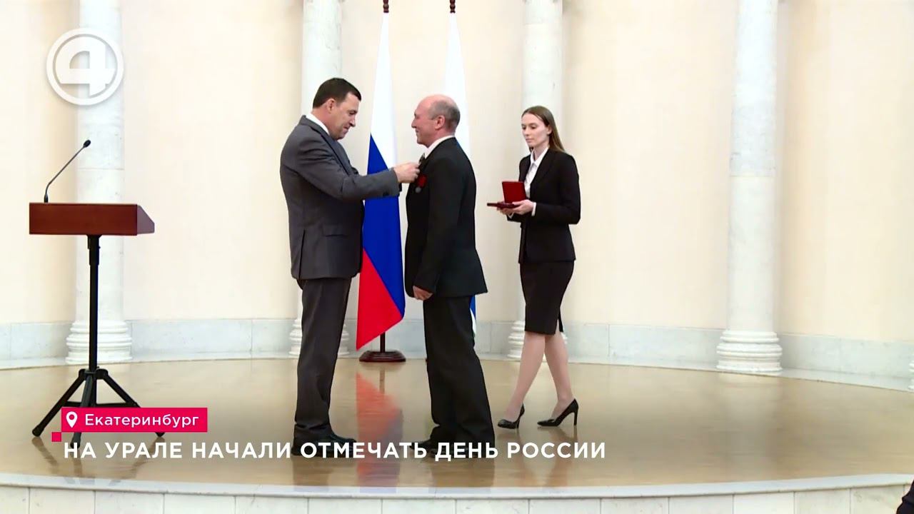 Мероприятия в честь главного государственного праздника – Дня России – начались на Среднем Урале. В Екатеринбурге подростки устроили патриотический флеш-моб, а губернатор Евгений Куйвашев вручил награды выдающимся уральцам. Стихи о Родине, патриотичные песни, танцы и историческая викторина. День России молодёжные трудовые отряды начали отмечать заранее. Около полусотни ребят собрались в парке Чкалова, чтобы поздравить уральцев с наступающим праздником! Катерина Черкашина: «Это праздник, который обозначает единство всех наших народов и всего нашего общества, которое в принципе есть в России, ведь всё-таки мы большая и многонациональная страна». Мини-концертом подростки не ограничились и раздали прохожим ленточки цветов российского флага. Подобные акции прошли в четырех районах Екатеринбурга: Академическом, Чкаловском Верх-Исетском и Ленинском. Дмитрий Биктимиров: «Ребятишки участвуют в различных активностях, узнают историю своей страны, историю государственных символов, за это получают жетончики и обменивают их на сладкие подарки, что очень важно молодёжи в такой интерактивной форме объяснять важные вещи, чтобы они гордились своей страной, чтобы они знали свою страну». В преддверии Дня России губернатор Свердловской области Евгений Куйвашев вручил награды федерального и регионального значения сорока пяти уральцам. Высокой чести удостоились медработники, деятели культуры, учителя, железнодорожники, строители и работники промышленных предприятий. Евгений Куйвашев: «Уникальные прорывные проекты, богатейшее историческое и культурное наследие, всё это заслуга миллионов наших граждан, в том числе и жителей нашей области». «Я считаю, что награда, которую мне губернатор сегодня вручил, это награда не только лично меня, как руководителя Главного управления, а всего личного состава пожарной охраны, федеральной противопожарной службы и ППС субъекта». На торжественном собрании, посвящённом дню России, глава региона наградил ещё десять выдающихся свердловчан. Например, медаль «За отвагу на пожаре» получили Евгений Бармин и Пётр Куренев из Сосьвы. Губернатор отметил представителей различных промышленных предприятий, компаний, Уральского государственного медицинского университета и других организаций. #Екатеринбург #четвертыйканал #новостиекатеринбурга