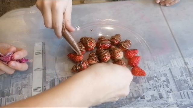 Принцесса Даша покрывает молочным шоколадом клубнику!!!