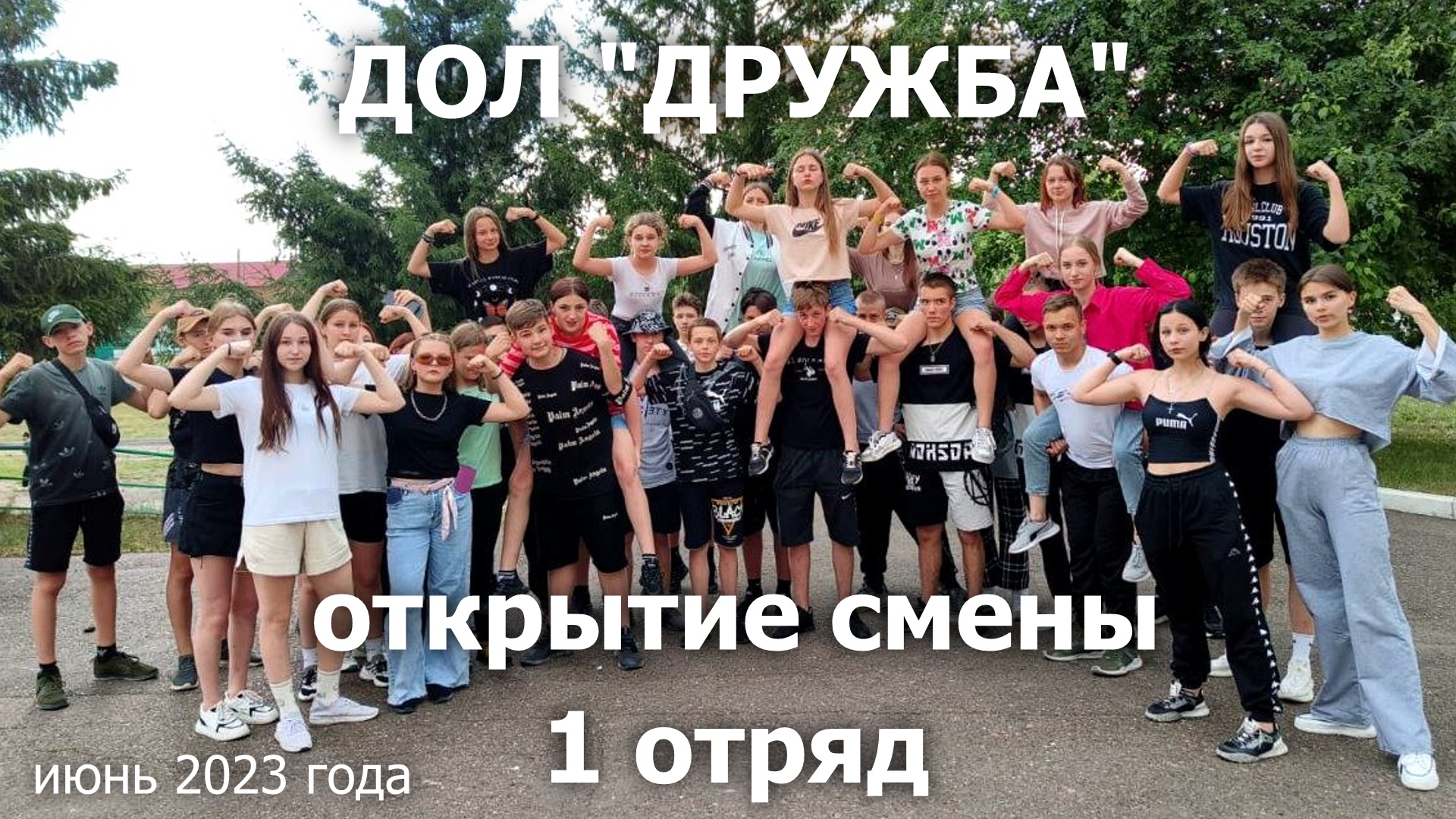 Открытие первой смены в ДОЛ "Дружба" Республика Башкортостан, Мелеузовский район, деревня Туманчино. Старшеклассники Петровской школы № 36 1 отряд