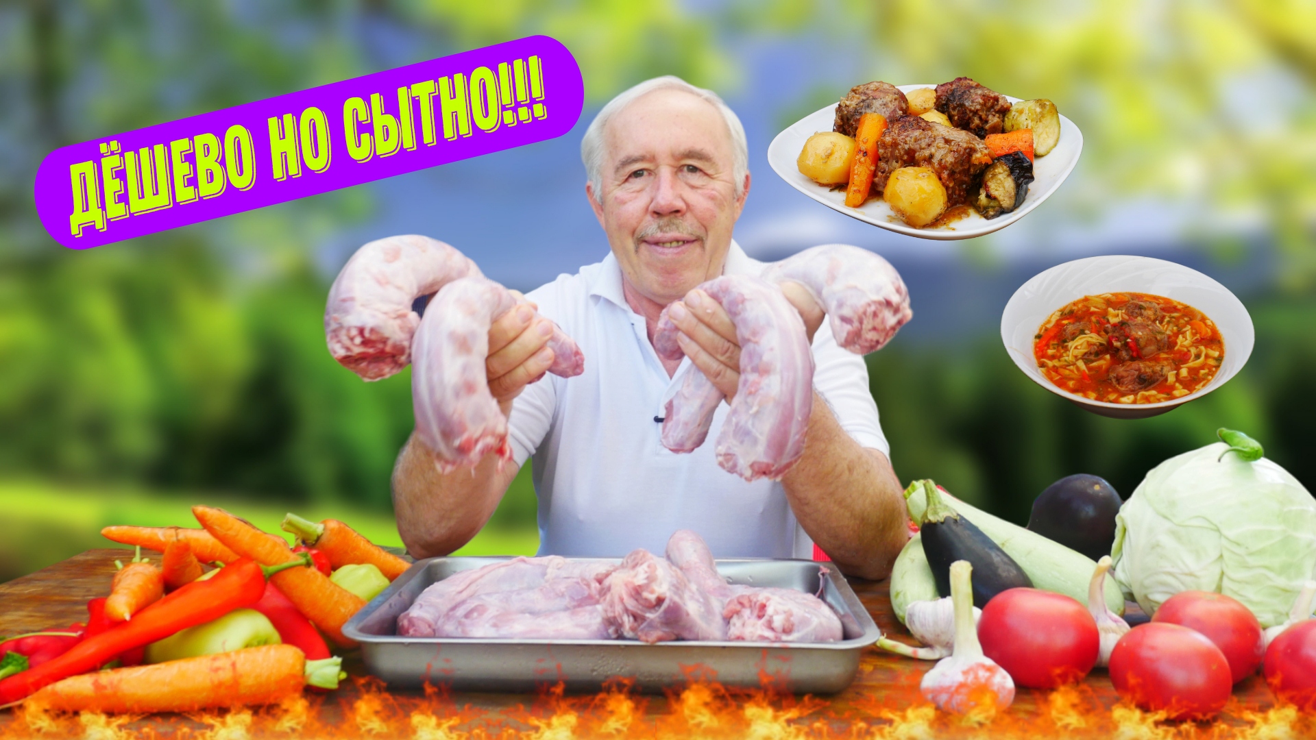 дед мясоед Готовим и показываем как приготовить вкусно и бюджетно - суп, жаркое из шеи индейки на костре. Прекрасное решение для приготовления обеда, в разных жизненных случаях, сытно, вкусно, дешево. Надеюсь мои рецепты, найдут применение у зрителей. Если Вам понравилось блюдо - ставьте лайк и подписывайтесь на мой кулинарный канал!!! ИНГРЕДИЕНТЫ: шеи индейки - 3 кг. соль, перец, мука для панировки. растительное масло для жарки. ЖАРКОЕ - топленое сливочное масло - 5 стол/лож. капуста на листья, картофель - 8 шт. лук - 3 шт., морковь - 3 шт., чеснок - 2 головки, баклажан - 1 шт., кабачки - 1 шт., петрушка, зеленый лук, розмарин - 2 веточки. соль, перец. СУП ЛАПША - мука - 1 стакан, яйцо сырое - 1 шт, соль. масло для обжарки, лук - 3 шт., морковь - 2 шт., помидор - 3 шт., перец сладкий - 4 шт., томат паста - 1 стол/лож., чеснок - 10 зубчиков. хмели - сунели - 1 стол/лож., паприка - 1 стол/лож., соль, перец. #дед #мясоед #суплапшавказане #жаркоенасковороде #еда #кулинария #рутуб