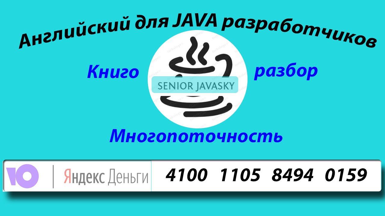 Надеюсь вы возьмете пользу с моего разбора книги "Java core", и не только разберетесь в нюансах Java разработки, но и подтянете свой английский, чтобы в будущем свободно работать на иностранную компанию и получать ЗП в долларах))) Задонатить автору: Карта Сбер: 5469 6000 2144 3601 (Аслан) ЯндексДеньги(YouMoney):4100110584940159 Спасибо :)