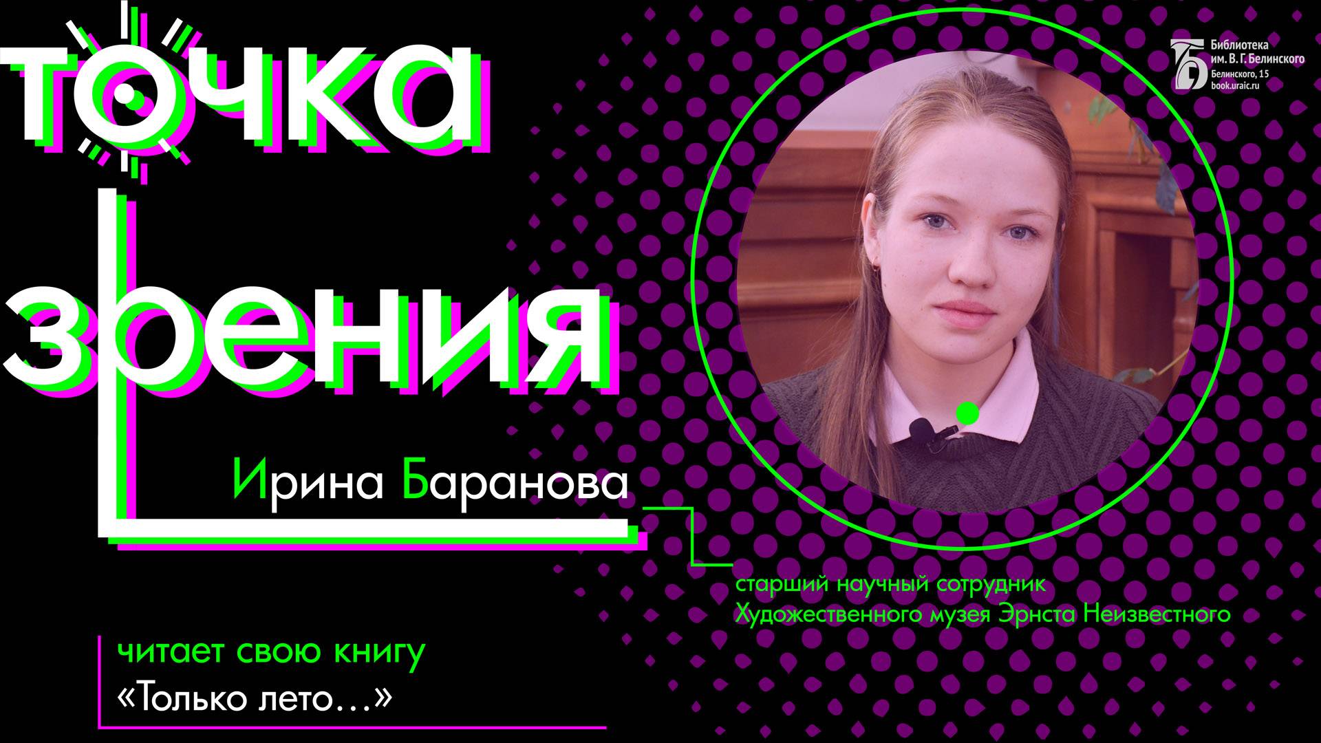 Ирина Баранова - старший научный сотрудник Художественного музея Эрнста Неизвестного. Камера, монтаж: Анна Порошина. Свердловская областная универсальная научная библиотека им. Белинского http://book.uraic.ru/ сайт https://vk.com/club6745014 VK