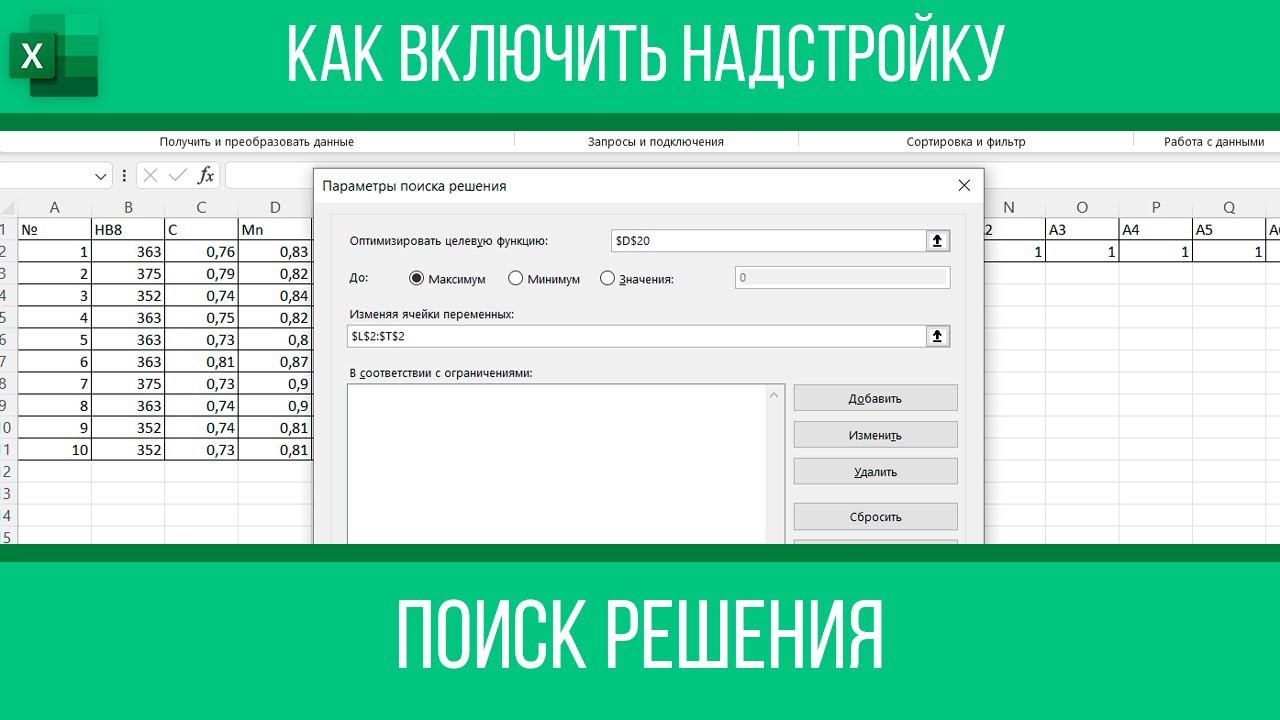 Как включить поиск решения в Excel