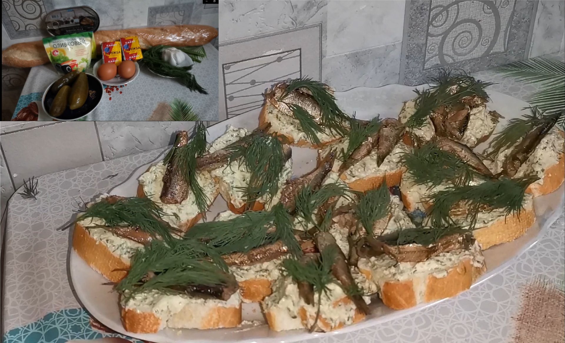 Бутерброды со шпротами. Закуска на праздничный стол.
