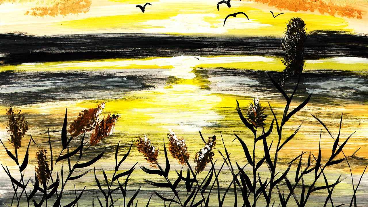 Как нарисовать осенний закат. Рисуем пейзаж гуашью. Рисуем закат на озере. Правополушарное рисование