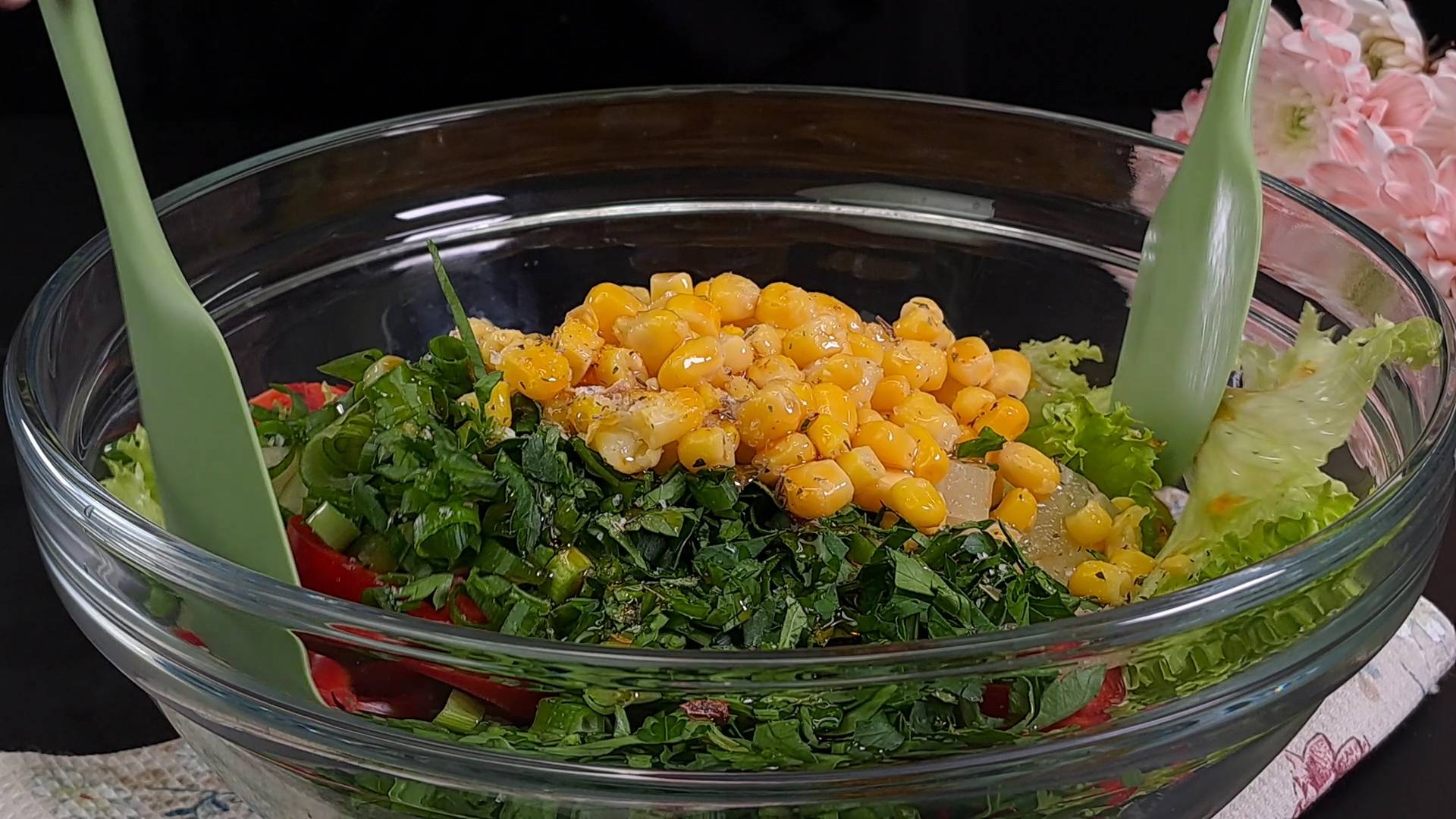 Ингредиенты для рецепта: листья салата. красный болгарский перец 1 штука. консервированные ананасы 2 штуки. зеленый лук. петрушка. консервированная кукуруза 50 грамм. соль. оливковое масло с перцем чили. Подписывайся на канал и делись видео с друзьями. Также у меня на канале еще очень много вкусных рецептов, и еще больше рецептов ждет вас впереди. Вконтакте - https://vk.com/vkusnierecipe Одноклассники - https://ok.ru/group/70000000861442 Дзен - https://dzen.ru/vkusnierecipes https://dzen.ru/isrecipe Весь музыкальный контент, использующийся в видео на данном канале размещён на основании лицензии Creative Commons 4.0 вариант лицензии CC0 (https://creativecommons.org/licenses/by/4.0/) с медиатеки, где не требуется указания авторства.