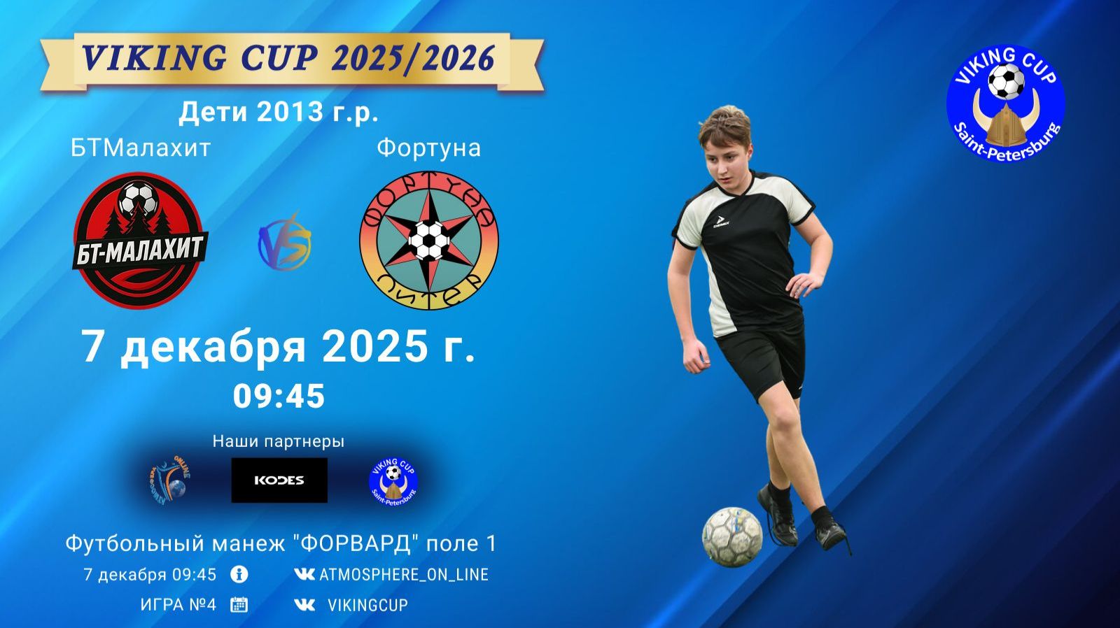 VIKING CUP среди команд 2013 г.р. (U12), Поле 1 7 декабря 2025 САНКТ-ПЕТЕРБУРГ, ФЦ "Форвард" ФК "БТМалахит" - ФК "Фортуна"/VIKING CUP, Игра №4, 07-12-2025 9:45
