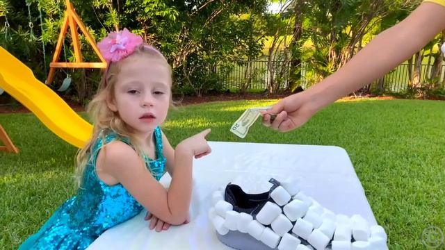 Настя играет в продавца сладких туфлей