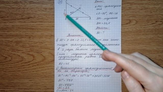#огэ2020 #огэ #задачи #математика #бесплатно #геометрия #алгебра #решуогэ #огэ #гдз #решение #экзамен #гиа #досрочныйвариант https://www.youtube.com/playlist?list=PLlbUUd3kSGkEn0CcOVj5hC1FS7d6kqHmU - задачи по математике. Алгебра. Геометрия. https://www.youtube.com/playlist?list=PL4--YZUcIzw5kC9wz9p90MiWM8Nbc1bVc - лайфхаки для вас. https://www.youtube.com/playlist?list=PL4--YZUcIzw7HUQyN0TN1w6aquWSRW79n - лайфхаки на Ютубе. https://www.youtube.com/playlist?list=PL4--YZUcIzw6ZrZ_WpMZRIft3QBzURm9C - интересные тесты и гадания. https://www.youtube.com/playlist?list=PL4--YZUcIzw6gm6ZYT3v3B3r1-23bvyuV - лайфхаки Андроид. https://www.youtube.com/playlist?list=PL4--YZUcIzw4Yd12S3dGGtNbSoXHX-mKP - лайфхаки в одноклассниках. https://www.youtube.com/playlist?list=PL4--YZUcIzw5fNzr4vr-w2Ylorh_ddk-C - игрушки и шоколадные яйца. https://www.youtube.com/playlist?list=PL4--YZUcIzw50Qgkgt4ta57Ua7PsKVFHj - своими руками полезные вещи. Известно, что в прямоугольном треугольнике ABC с прямым углом B медиана BM=22,5, катет AB=36. Найди катет BC этого треугольника. Известно, что в прямоугольном треугольнике ABC с прямым углом B медиана BM=22,5, катет AB=36. Найди катет BC этого треугольника. 24)Известно, что в прямоугольном треугольнике ABC с прямым углом B медиана BM=22,5, катет AB=36. Найди катет BC этого треугольника. 21)Известно, что в прямоугольном треугольнике ABC с прямым углом B медиана BM=22,5, катет AB=36. Найди катет BC этого треугольника.