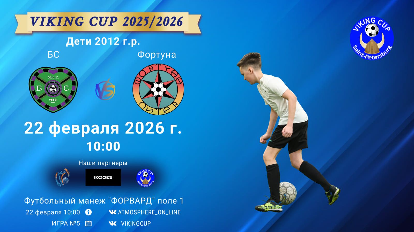 VIKING CUP среди команд 2012 г.р. (U14), Поле 1 22 февраля 2026 САНКТ-ПЕТЕРБУРГ, ФЦ "Форвард" БС-Фортуна/VIKING CUP, Игра №5, 22-02-2026 10:00