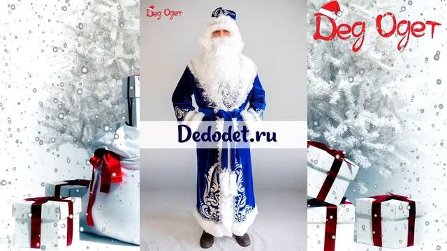 Костюм Деда Мороза Боярский синий. Костюм Деда Мороза с аппликацией, выполненный в насыщенно синих тонах. Простота и изысканность — вот главные атрибуты одежды Деда Мороза. Приятные глазу украшения хорошо сочетаются с цветом шубы: серебристая тесьма, аппликация, выполненная в зимнем стиле из серебристого блестящего напыления. Ссылка на товар: https://dedodet.ru/kostyum-deda-moroza-boyarskij-sinij/