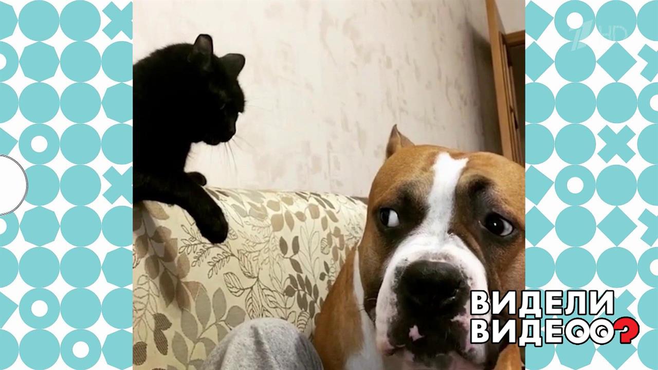 Как кот Кузя и амстафф Хаммер поспорили о том, кто будет спать в хозяйской постели.
