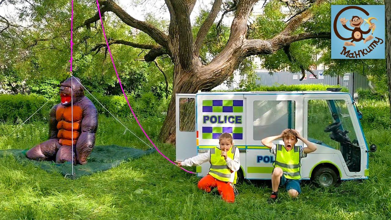 Дети и Машина. Диана и Даня, Полицейская машина и Горилла. Манкиту