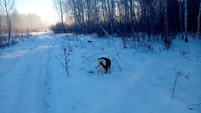 Хаски охотится на мышей под снегом !