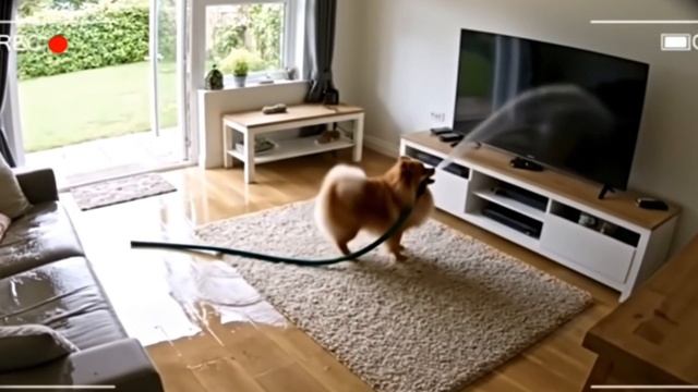 Собака хозяйничает в доме Смотреть видео с животными собака со шлангом