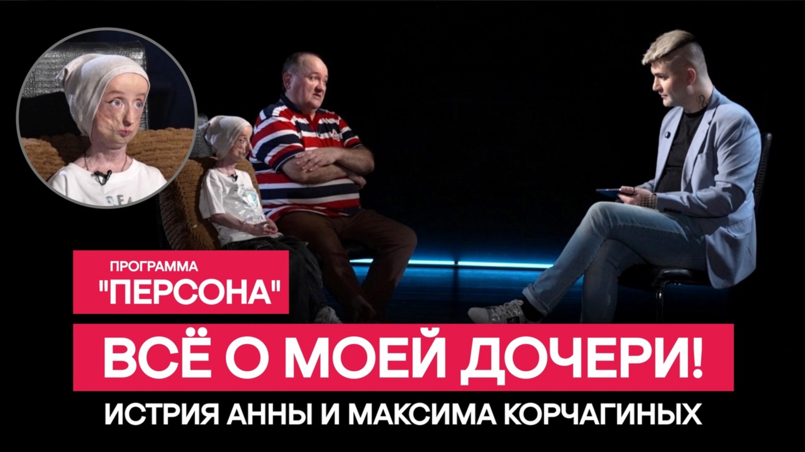 Подписаться на официальную группу программы в ВК: https://vk.com/programma_persona Прогерия - это редкая болезнь, которая диагностирована у четырехсот людей в мире. Пусть история Анны и Максима Корчагиных научит каждого из нас быть добрее к окружающим и с пониманием относиться к любым внешним и внутренним особенностям друг друга. Телевизионная премьера: сегодня в 11-00 и в 00-00 на 49 канале. Повторы: понедельник в 11-00 и в 17-00, вторник в 00-00 и в 12-00, среда в 11-00, пятница в 11-00 и в 18-15. В группе в ВК программа выходит на несколько часов раньше телеверсии. _____________________ 00:00-00:59 тизер 01:00-01:22 за кадром 01:23-02:51 вступление и представление героев 02:52-03:56 договариваемся о правилах и выясняем возраст 03:57-06:20 зачем снимать ролики для соцсетей и как папа готовил Анну к хейтерам? 06:21-07:30 что писали в Интернете и что задевало? 07:31-10:20 про внешность, первую реакцию людей из-за необычной внешности Анны и как Максим стал папой-другом 10:21-15:22 когда папа понял, что Анна отличается от других? Про косые взгляды и "жирафе шеи". Почему Анну должны чаще и больше видеть люди? 15:23-17:28 наказание или доверие? 17:29-19:32 стадии принятия и какая из них была самая сложная? 19:33-22:20 редкие болезни - это испытания для всего общества и какая миссия у таких детей? 22:21-32:21 как смягчали "острые углы" в восприятии близких людей. Про лечение в США и испытание лекарства. 32:22-35:00 впечатления от поездки в США: общество, доступная среда и реакция людей на Анну 35:01-37:25 как устроен день Анны. О мальтипу Морсе, котах и как собака изменила Максима? 37:26-38:01 друзья Анны 38:02-39:14 мысли Максима о завтрашнем дне и жалости к себе 39:15-42:05 о доброте 42:06-43:25 мечты Максима 43:26-44:40 финальные вопросы о силе, добре, радости и любви 44:41-45:54 выборе Максима: горькая правда или сладкая ложь?