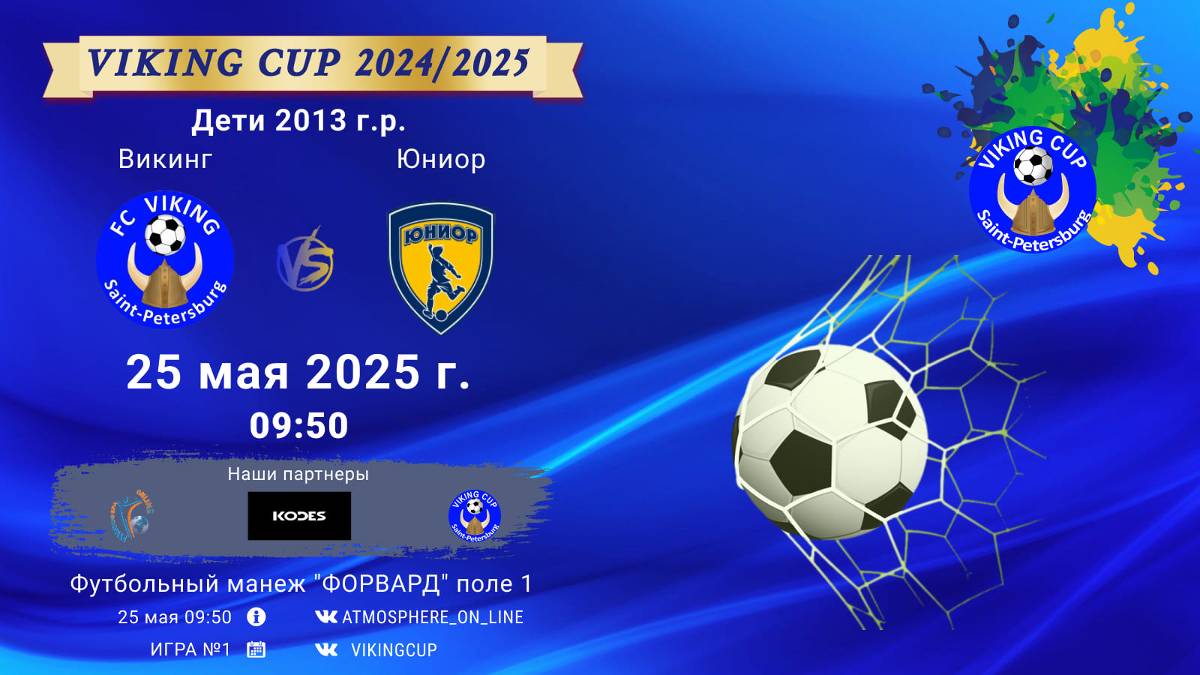 VIKING CUP среди команд 2013 г.р. (U12), Поле 1 25 мая 2025 САНКТ-ПЕТЕРБУРГ, ФЦ "Форвард" ФК "Викинг" - ФК "Юниор"/VIKING CUP, Игра №1, 25-05-2025 09:50