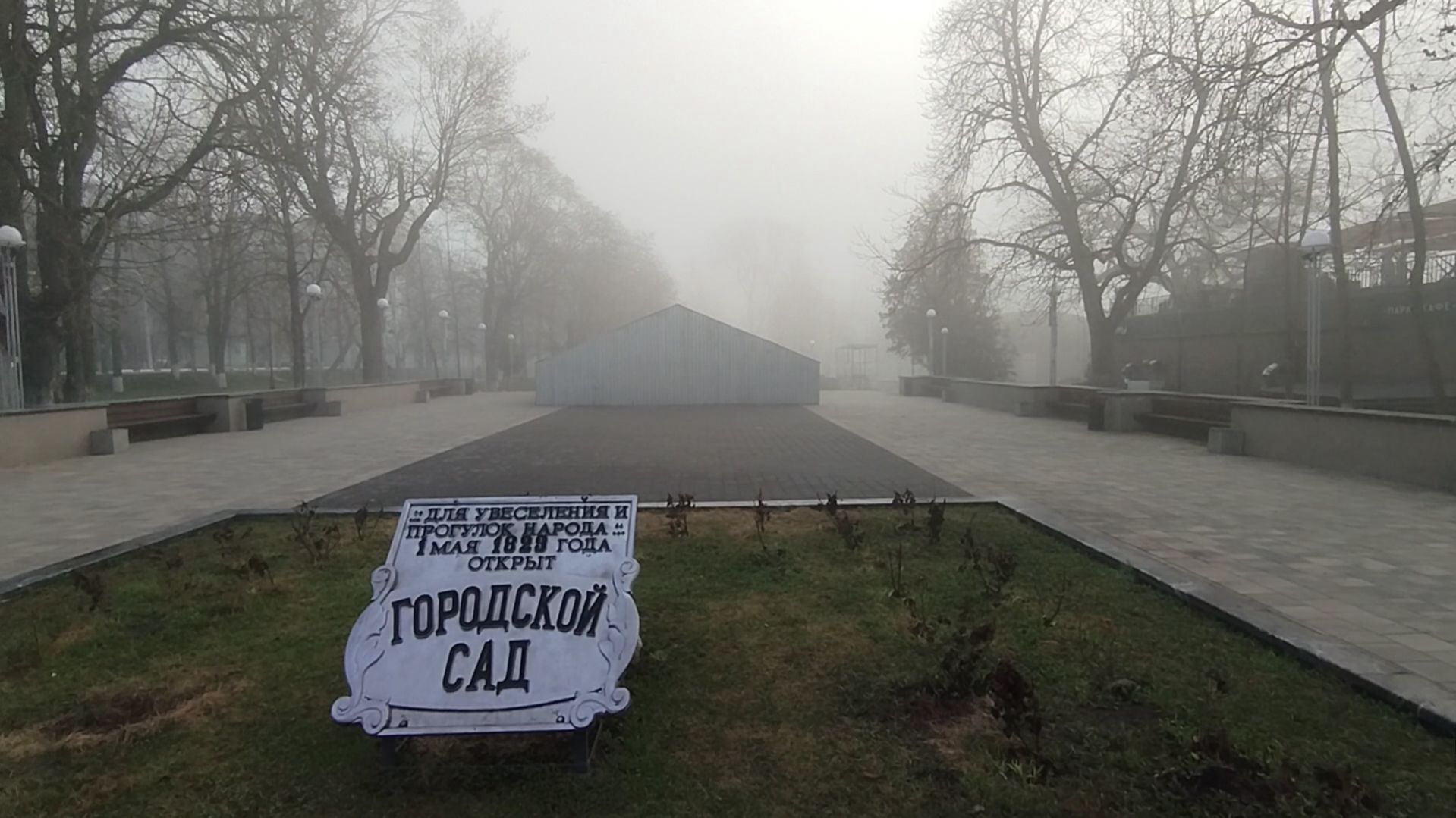 Городской сад. Туман в парке.