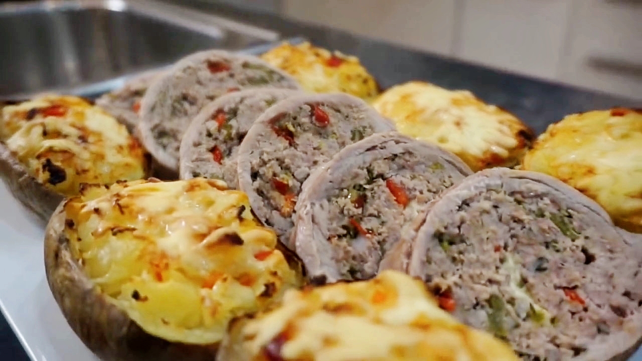 Попробуйте мой вкусный рецепт сочного мясного рулета с гарниром из тушеной картошки в духовке