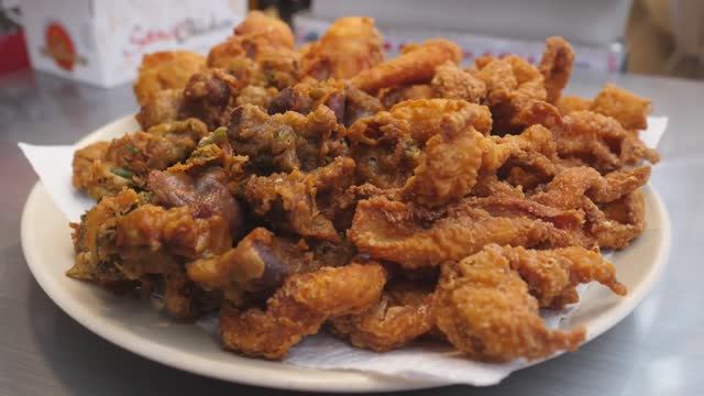 Жареная курица по-старинке, курица в кисло-сладком соусе, жареные креветки