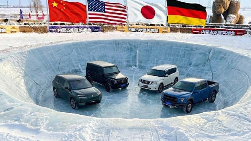 Внедорожники каких стран справляются лучше с ледяной ямой.