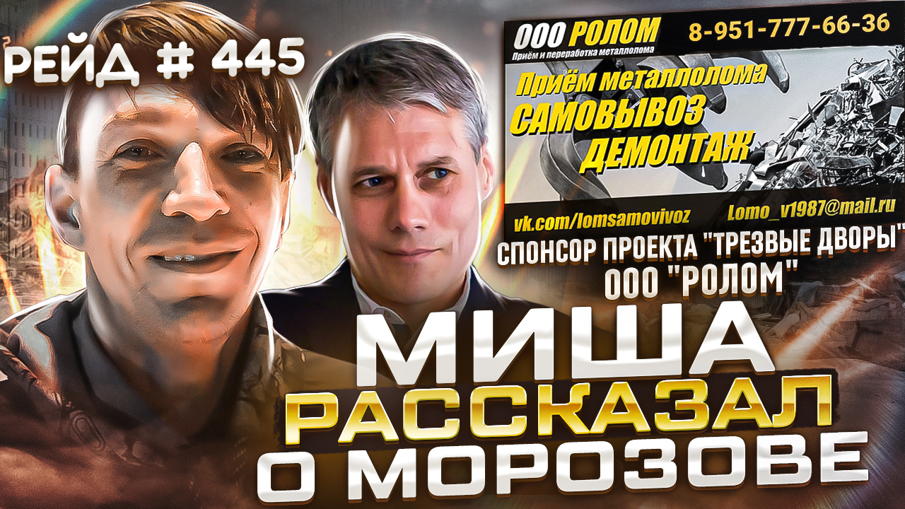 31.03.2022г Трезвые Дворы - Кто по Жизни Морозов об этом Рассказал Урка Миша Шеф. В этом видео, будет Вокзал Челябинский, Аврора и интервью с Уркой Мишей Шефом Урка Миша Шеф отбывал в тюрьме двадцать пять лет. Хорошо знает Морозова и его киллера Кабана с ними вместе пересекался в тюрьме. Были уже интервью с зеками кто рассказывал про Морозова и ломал миф о том, что это криминальный авторитет, они просто говорили, что Морозов Шерсть и объясняли почему. Шеф рассказал , что близкие Морозова сидели за изнасилование и убийство. Сам Морозов был организатором этих преступлений и он как лидер ОПГ отмотал 20 лет. Сегодня узнаем о Морозове мнение Урки Рецидивиста Миши погоняло Шеф. «Трезвые Дворы» Рейд № 445 г. Челябинск #ТрезвыеДворы #ТрезваяРоссия #ЛевПротив #ВоложанинАлександр