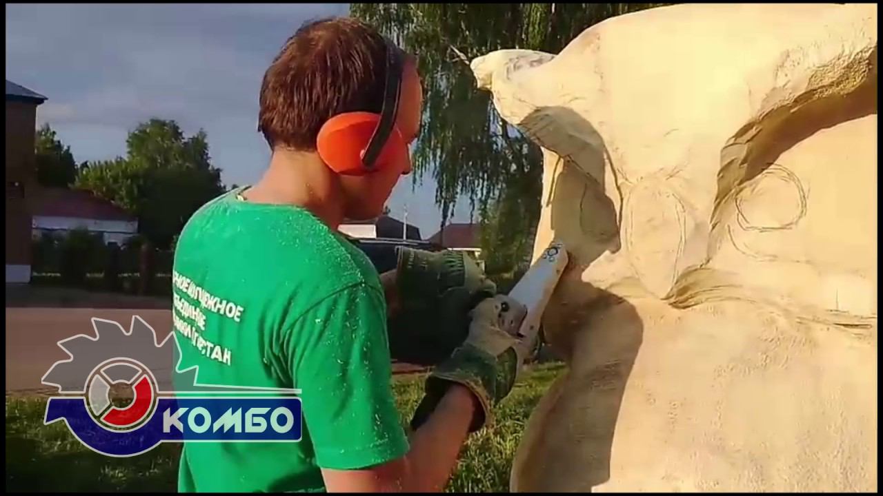 www.comboinfo.com Бензопилой обработана основная форма. Потом диском Graff Spedd Cutter выравнивались плоскости. Если бы не насадка Комбо Wood, далее пришлось бы работать стамесками Потребовался бы набор из десяти стамесок и примерно 2 часа времени. С насадкой Комбо работа была выполнена за 30 минут. Отмечается, что текстура тополя рыхлая и сложно поддается обработке режущим инструментом. По этой причине применялась рашпильная фреза Saburrtooth колесо BZ23890 9,5х50,8 мм extra coarse. Автор видео Андрей Бикмуллин. https://vk.com/id220941103