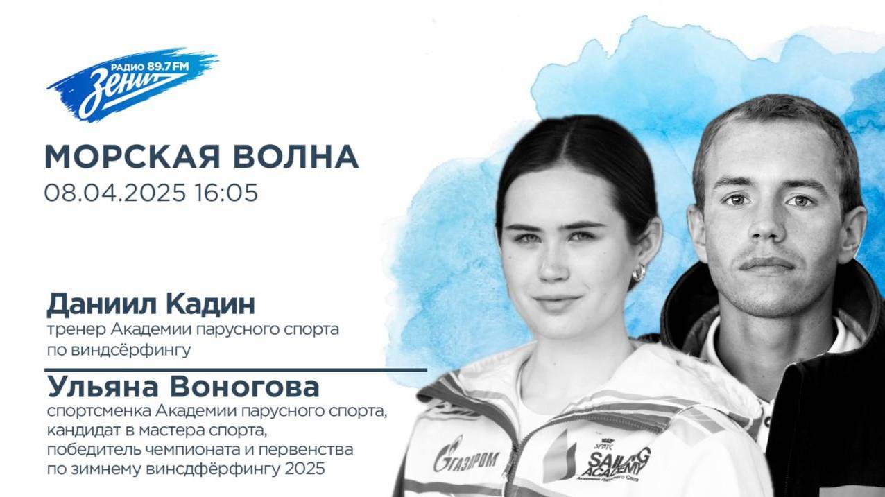 «Морская волна»: сегодня с нами Даниил Кадин, тренер Академии парусного спорта по виндсёрфингу и Ульяна Воногова, спортсменка Академии парусного спорта, кандидат в мастера спорта, победитель чемпионата и первенства по зимнему винсдфёрфингу 2025.