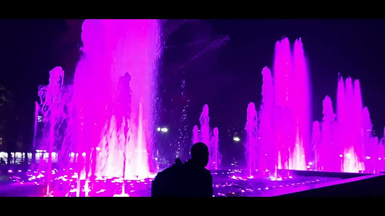 Поющие фонтаны у кинотеатра Аврора по улице Красной в городе Краснодар. (Singing fountains at the Aurora cinema on Krasnaya street in the city of Krasnodar).