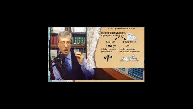 В речи юриста должно присутствовать две речи: краткая и пространная. В качественной юридической речи должно быть две речи, которые напоминают матрёшку. Маленькая речь, которая прячется внутри большой речи. Краткая речь, в ходе которой реципиент принципиально принимает сторону юриста. В общей сложности такая речь не должна длиться более пяти минут. Эта речь создаётся по общим канонам убеждающей речи. Цель - убедить реципиента. Пространная речь необходима для того, чтобы юрист предоставил аргументы для того, чтобы реципиент смог обосновать своё решение для других. В ходе пространной речи излагаются подробные аргументы и обоснования решения для иных лиц (судов апелляционной, кассационной инстанции). Цель - укрепить убеждение реципиента.