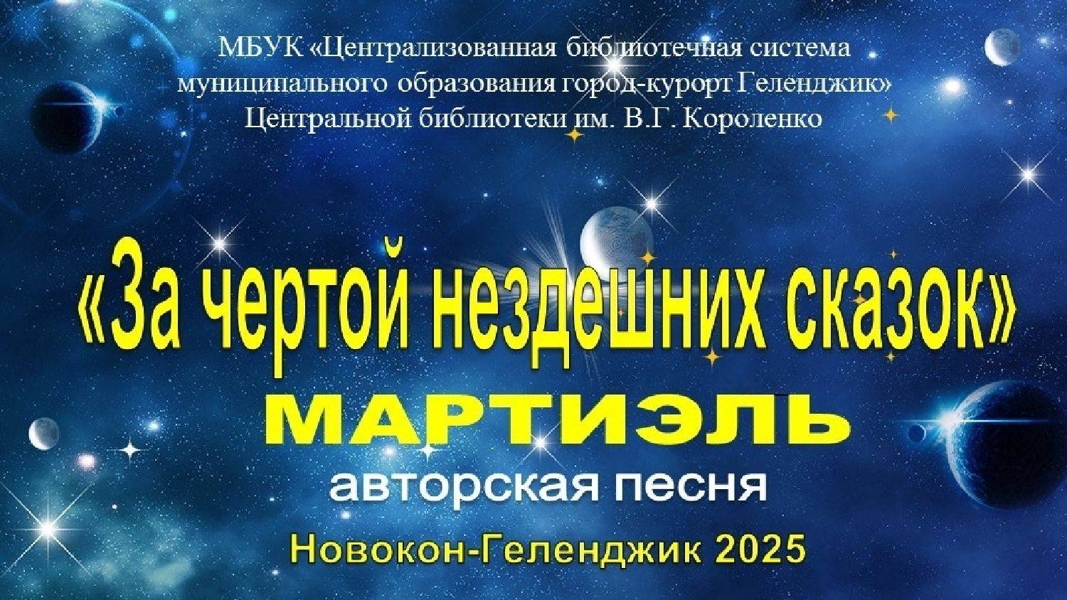 В рамках Недели российской фантастики «НОВОКОН – Геленджик», в читальном зале Центральной библиотеки им. В.Г. Короленко прошел концерт авторской песни Мартиэль из Санкт-Петербурга «За чертой нездешних сказок». Мартиэль – псевдоним петербургской поэтессы. Её творчество — это удивительное путешествие по тропам человеческой души, где каждый может найти что-то своё, сокровенное. В её песнях звучали размышления о жизни, о доблести, любви и чести, о тайнах мироздания. Это целая вселенная, где переплетаются древние традиции менестрелей, мистические образы, сказочные сюжеты и философские идеи. А ещё писатель Иар Эльтеррус охарактеризовал песни Мартиэль «между легендой и сказкой, сном и явью». Особая атмосфера позволила зрителям погрузиться в мир нездешних сказок и размышлений о вечных ценностях. #ЧитающийГеленджик, #БиблиотекиГеленджика