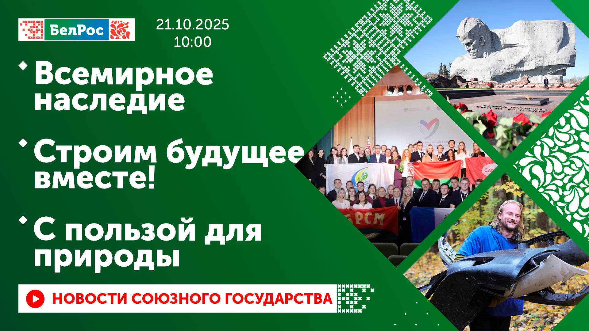 Закадровый текст озвучивает *ИИ Антон* Новости 21.10.2025 на 10:00 - Расчёты беспилотников уничтожили пункт временной дислокации ВСУ на Купянском направлении. - Артиллерия группировки "Восток" поразила позиции дронов ВСУ в Днепропетровской области. - Военные связисты группировки войск "Север" обеспечивают бесперебойную передачу информации. - В Беларуси стартовала стажировка для управленцев из России. - Мамаев курган и Брестскую крепость номинируют на включение в список ЮНЕСКО. - Стартовал слёт-фестиваль молодёжных патриотических объединений Союзного государства. - Больше тонны мусора собрали участники турнира-субботника в Минске. Смотрите главные новости Союзного государства на телеканале БелРос. Ссылки на наши соц. сети Сайт: http://belros.tv/ Telegram: https://t.me/belrostv Одноклассники: https://ok.ru/group/55657426976918 ВКонтакте: https://vk.com/belrostv TikTok: https://www.tiktok.com/@belros_tv?_t=... RuTube: https://rutube.ru/channel/23501830/ Яндекс. Дзен: https://zen.yandex.ru/belrostvv Наши подкасты на Яндекс. Музыке: https://music.yandex.ru/album/25615251 #главныеновости #новостисегодня #СоюзноеГосударство